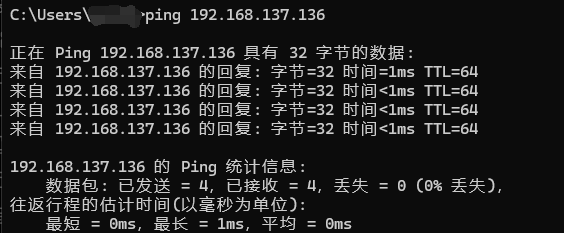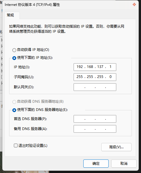 (ps:这里我看别人说,确定后会把主机ip改为137网段的,就是192.168.137.XX,但我这并没有,如果有的话确定就行,为了后续操作方便)